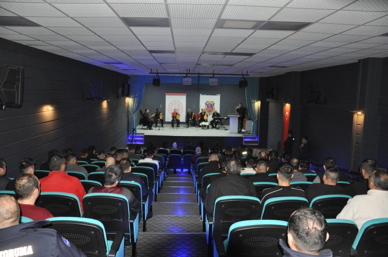Kurumumuzda Değerler Eğitim kapsamında 12.12.2025 tarihinde “TÜRK HALK MÜZİĞİ KONSERİ” düzenlendi. Konserin başlangıç bölümünde Bağlama Kursu Öğretmeni Kadir AYDIN’ın yönetiminde hükümlü öğrencilerin söylediği türküler büyük beğeni topladı. Etkinlik Erzurum’un yerel sanatçıları Kadir AYDIN, Sezer KURT, Emre KARADUMAN ve Berkay ÖZTÜRK’ün söylediği yerel türkülerle devam etti.